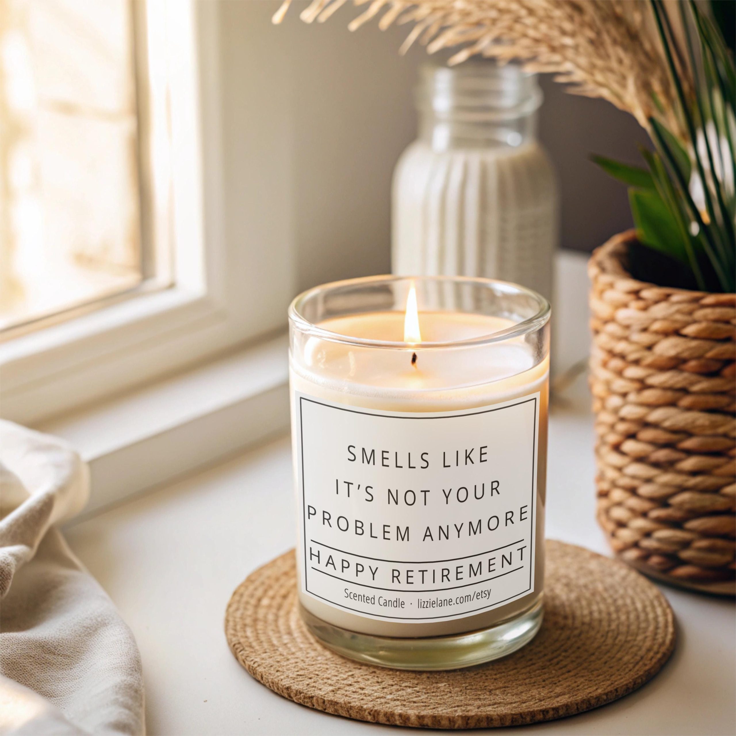 Funny Retirement Gift, Smells Like It’s Not My Problem Scented Candle, for Him Her Teacher Retirement, Joke Candle, For Friend Co-Worker
